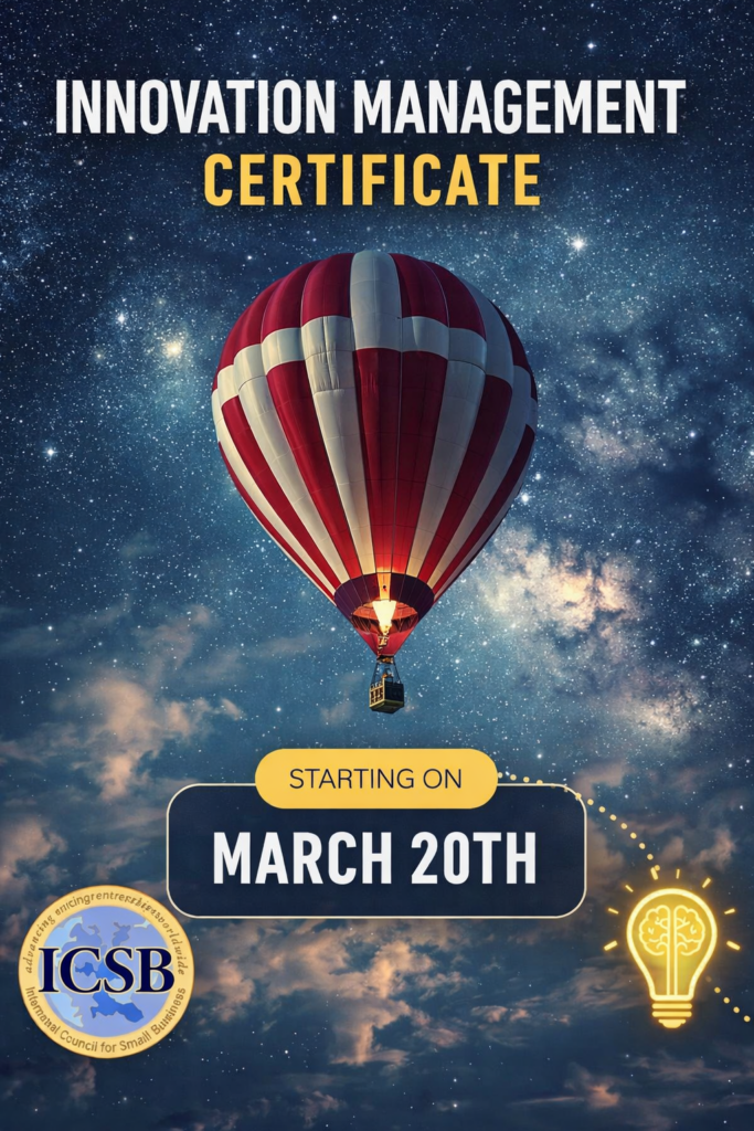 The ICSB three-session Innovation Management Certificate equips entrepreneurs, innovators, and business leaders with a rigorous, research-backed process to move from vision to viable concept—closing the gaps that Design Thinking and the Lean Startup leave open and transforming front-end innovation into a sustainable competitive advantage for MSMEs navigating today’s relentless pace of change.